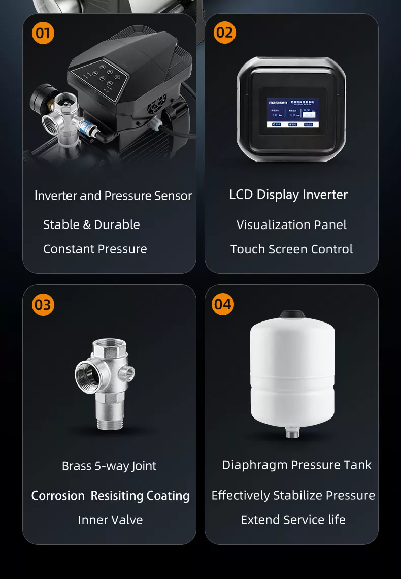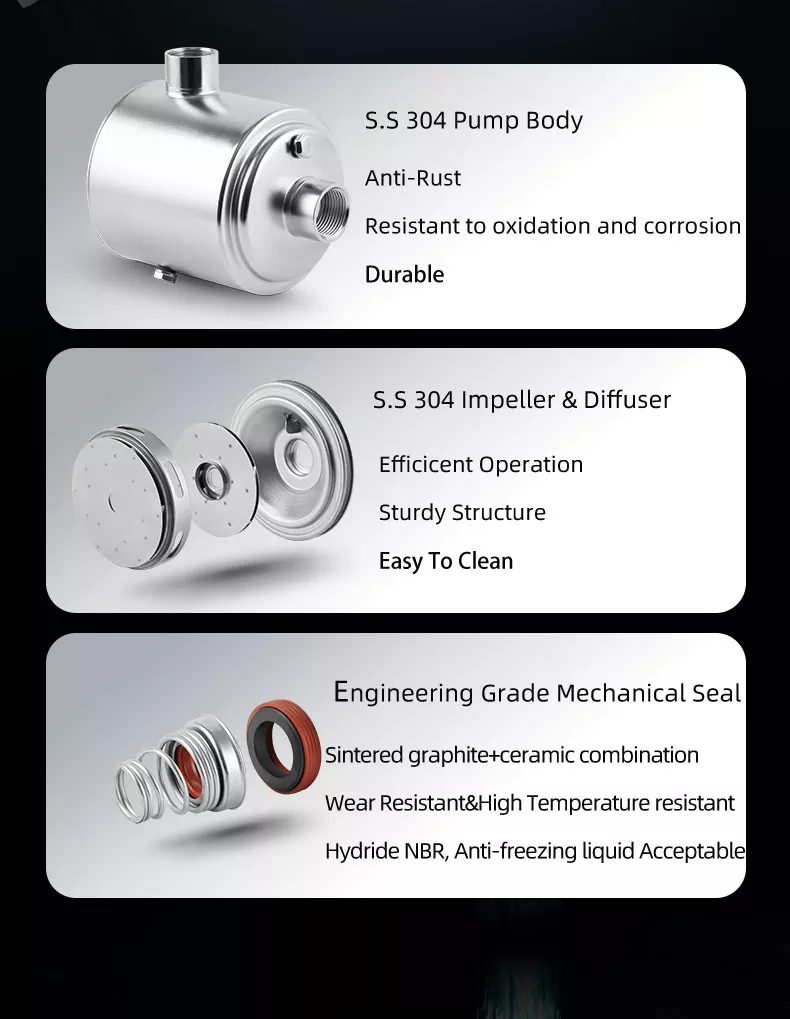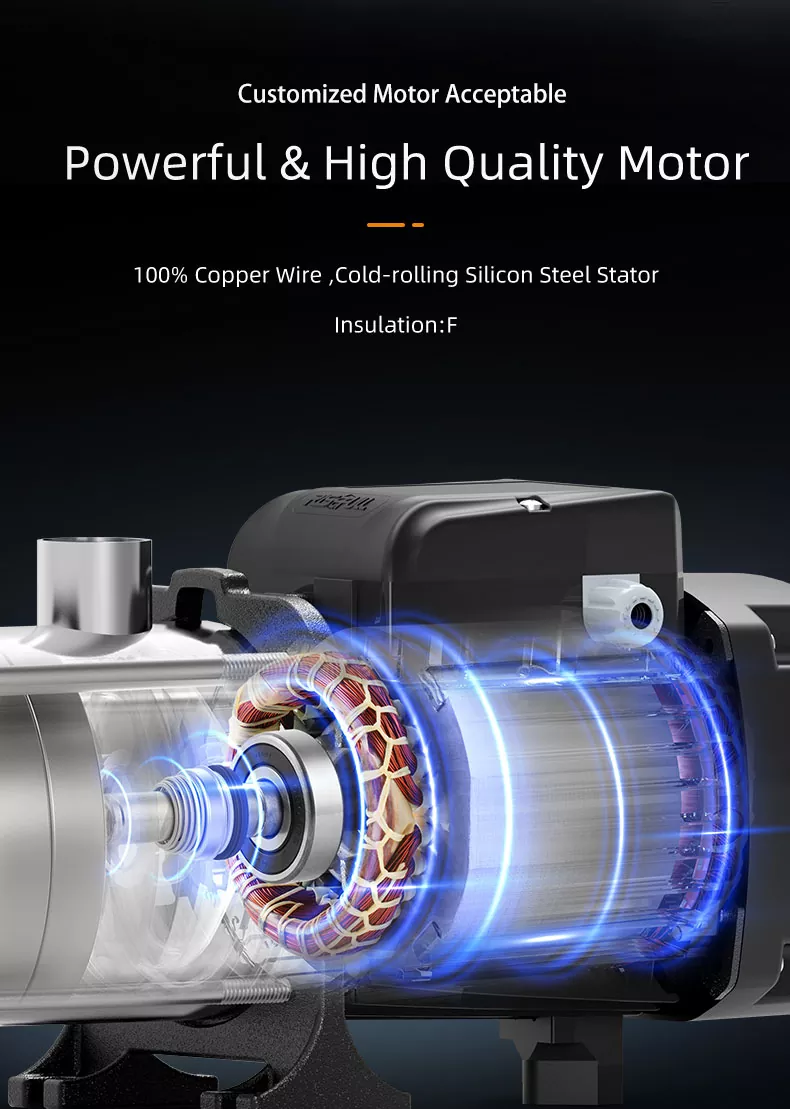 3. बहुमुखी अनुप्रयोग: चाहे आपको इमारतों, सिंचाई प्रणालियों, या औद्योगिक प्रक्रियाओं में पानी का दबाव बढ़ाने की आवश्यकता हो, यह पंप आसानी से कई प्रकार की आवश्यकताओं को पूरा करने के लिए पर्याप्त बहुमुखी है।