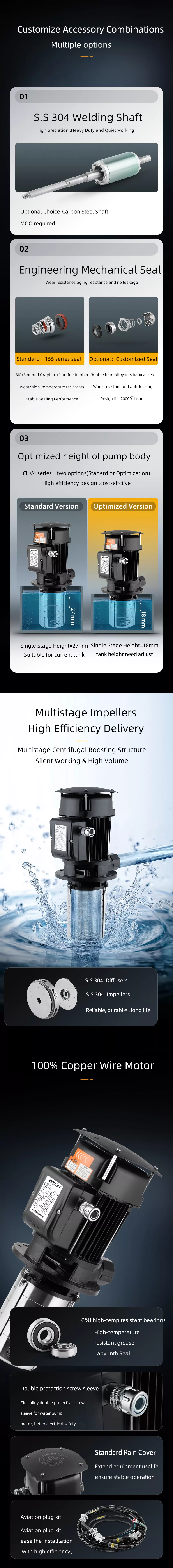 निम्नलिखित सीएचवी श्रृंखला का एक परिचय है सीएचवी इमर्सिबल मल्टीस्टेज सेंट्रीफ्यूगल पंप, जिसे जलमग्न पंप या मशीन टॉपपंप के रूप में भी जाना जाता है, का उपयोग मशीन टूल कूलेंट, स्नेहक, कंडेनसेट जल हस्तांतरण, औद्योगिक सफाई उपकरण, निस्पंदन सिस्टम और जलमग्न पंप के उपयोग के लिए उपयुक्त अन्य अनुप्रयोगों के लिए किया जाता है। एलटी मशीन टूल्स, ग्राइंडिंग मशीन, सीएनसी मशीनिंग सेंटर, ईडीएम मशीन, औद्योगिक सफाई मशीन और अन्य उपकरणों के साथ एकीकरण के लिए आदर्श है।