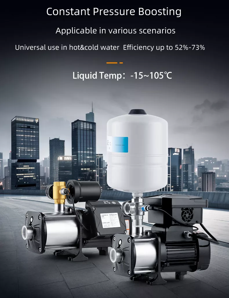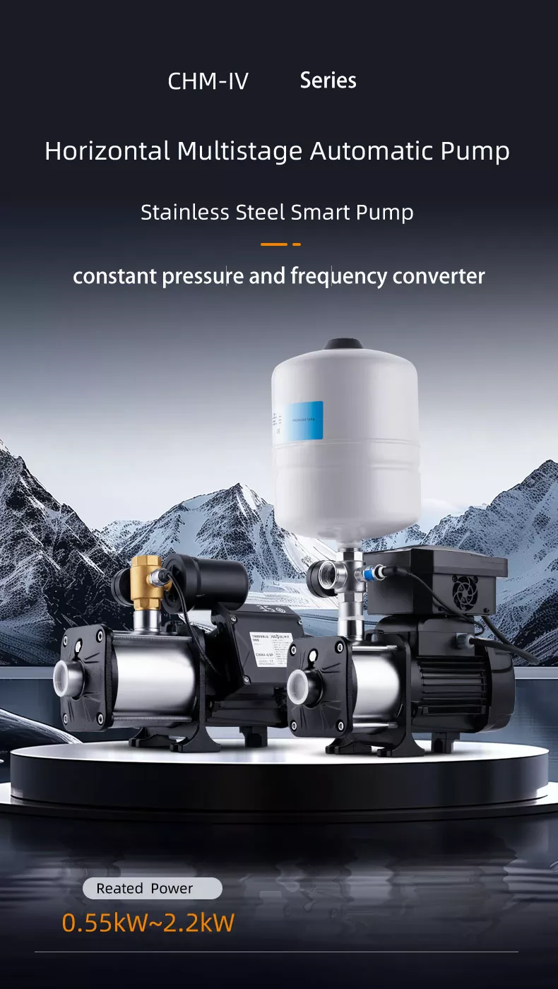 CHM12/IV श्रृंखला स्मार्ट इन्वर्टर श्रृंखला क्षैतिज स्टेनलेस स्टील मल्टीस्टेज सेंट्रीफ्यूगल पंप वर्तमान में बाजार पर एक अपेक्षाकृत परिपक्व उत्पाद है जो कॉम्पैक्ट संरचना और स्थिर काम करने, कम ऑपरेटिंग शोर, 44-70%तक ईसीसी के साथ है। सभी पानी पासिंग घटक स्टेनलेस स्टील AISI304 से बने होते हैं। यह व्यापक रूप से उपयोग किया जाता है