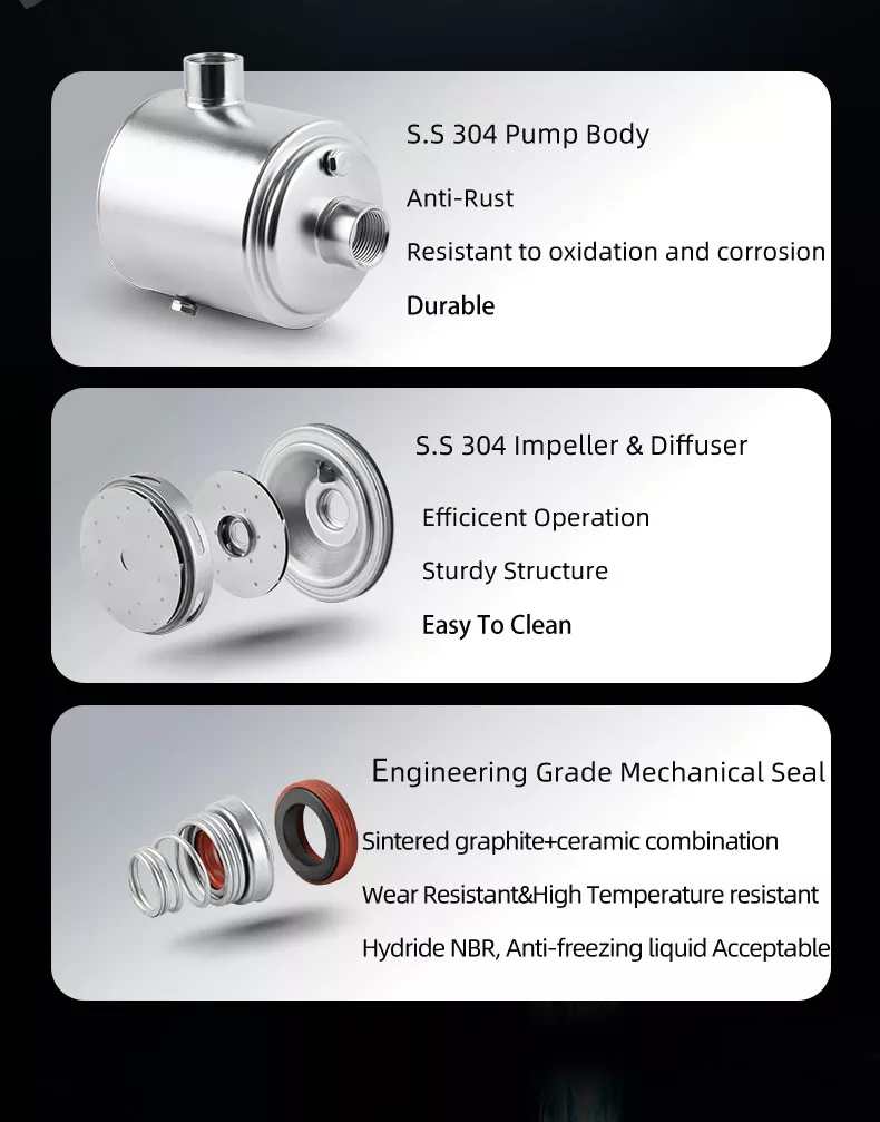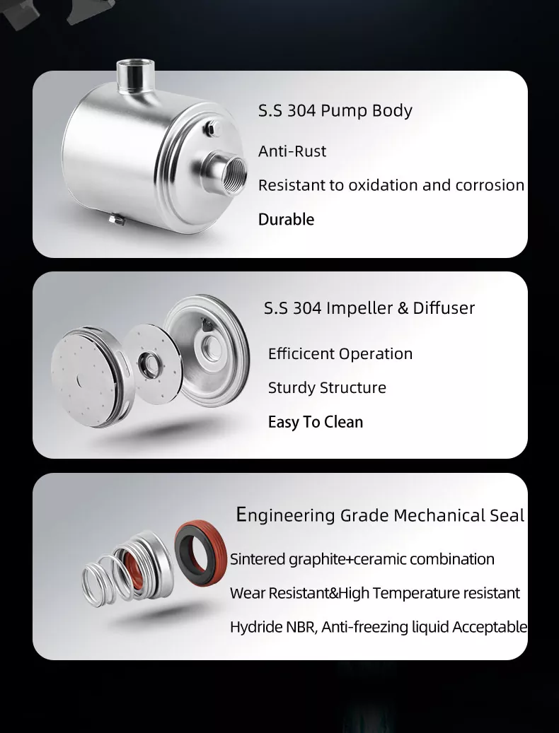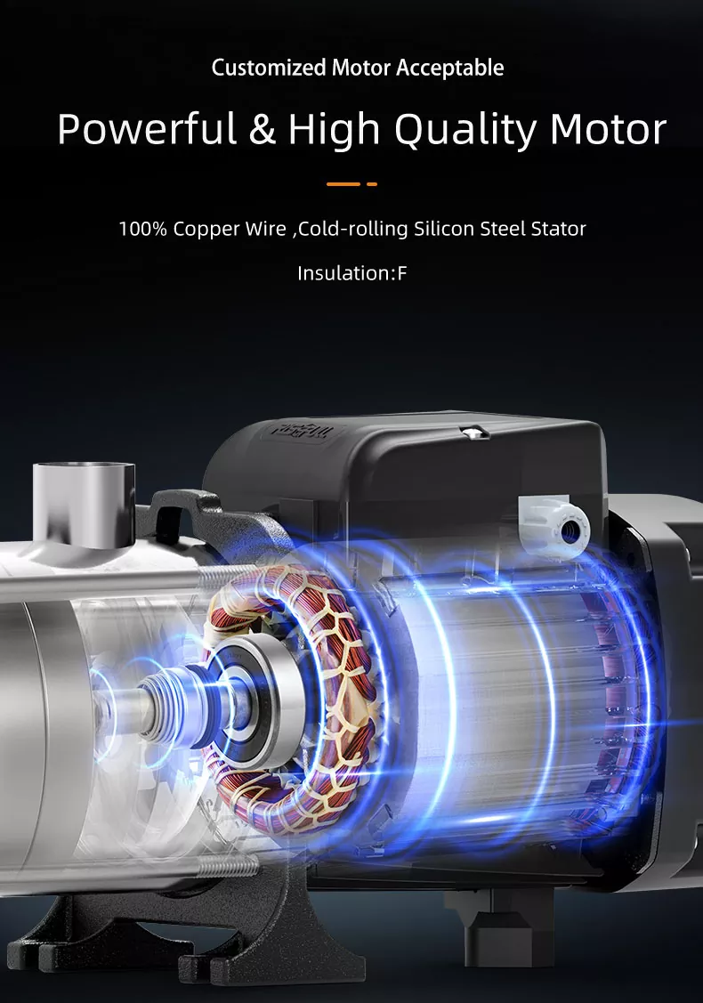 समग्र दबाव उत्पादन में योगदान करने वाले प्रत्येक चरण के साथ, जब भी आपको इसकी आवश्यकता हो तो आप पानी के एक स्थिर और शक्तिशाली प्रवाह का आनंद ले सकते हैं। अपने बगीचे को पानी देने से लेकर एक साथ कई बारिश चलाने तक, यह पंप एक विश्वसनीय और सुसंगत प्रदर्शन देता है।